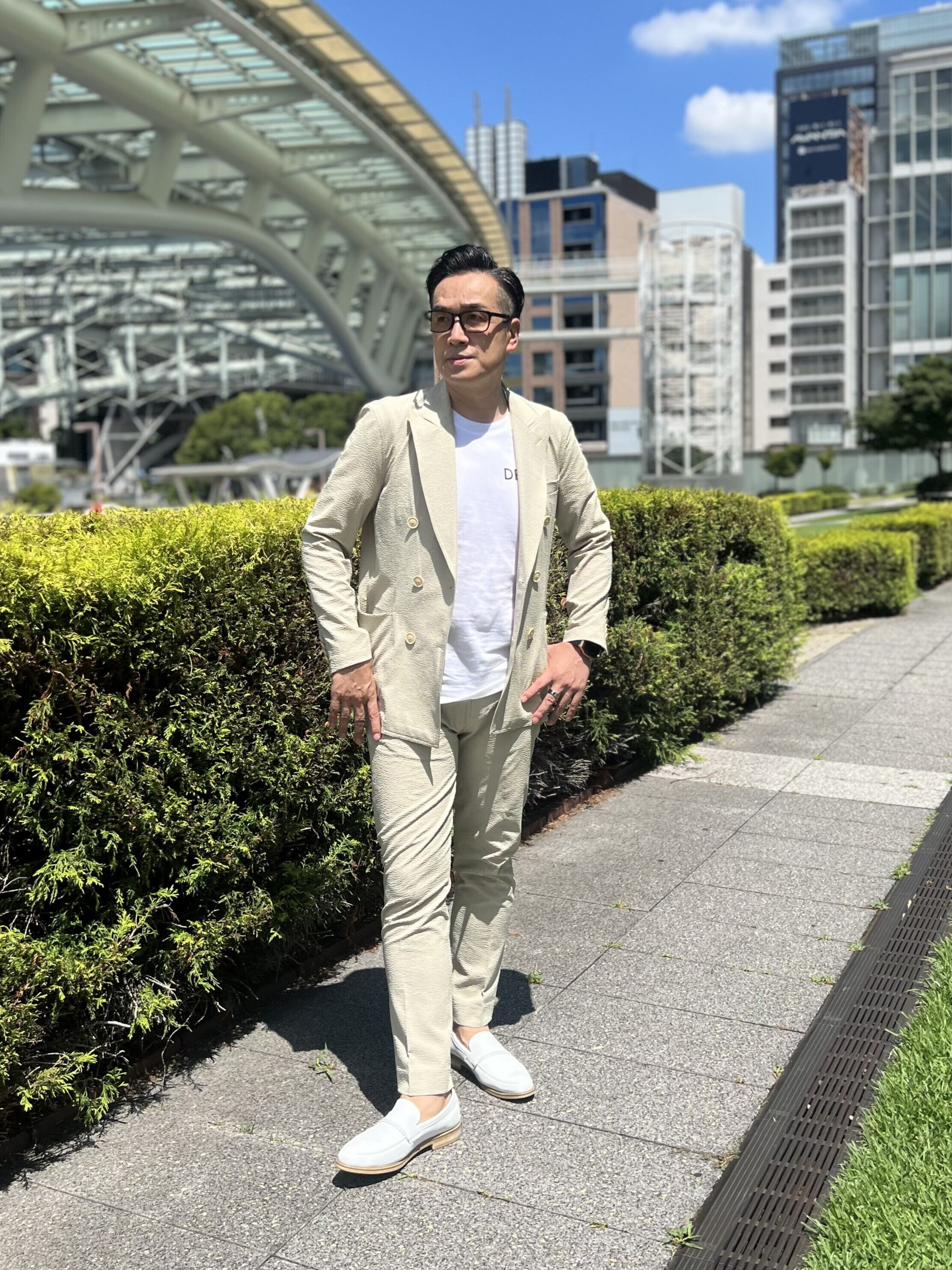 40代・50代をカッコよく見せるカッティングで、シャツやTシャツと合わせてきるだけでコーデが決まるセットアップで、毎日忙しいお洒落オヤジにとってタイムパフォーマンスも抜群!もちろん、上下別々に使ってコーデを楽しむこともできます。