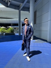 春夏ダブルジャケットシアサッカーセットアップ ネイビー