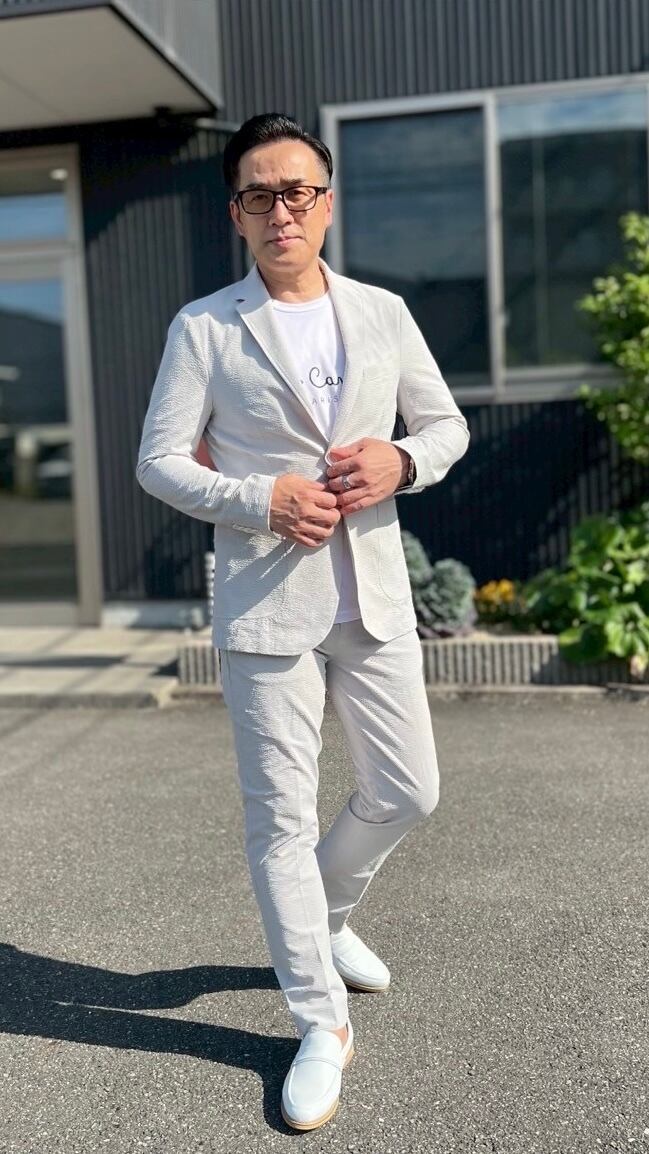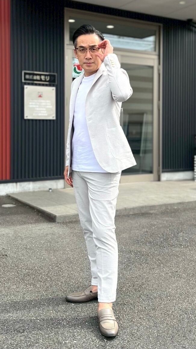 40代・50代をカッコよく見せるカッティングで、シャツやTシャツと合わせてきるだけでコーデが決まるセットアップで、毎日忙しいお洒落オヤジにとってタイムパフォーマンスも抜群!