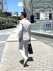 ビジネスシーンからオフコーデまで、軽やかに楽しんでいただけるセットアップです。