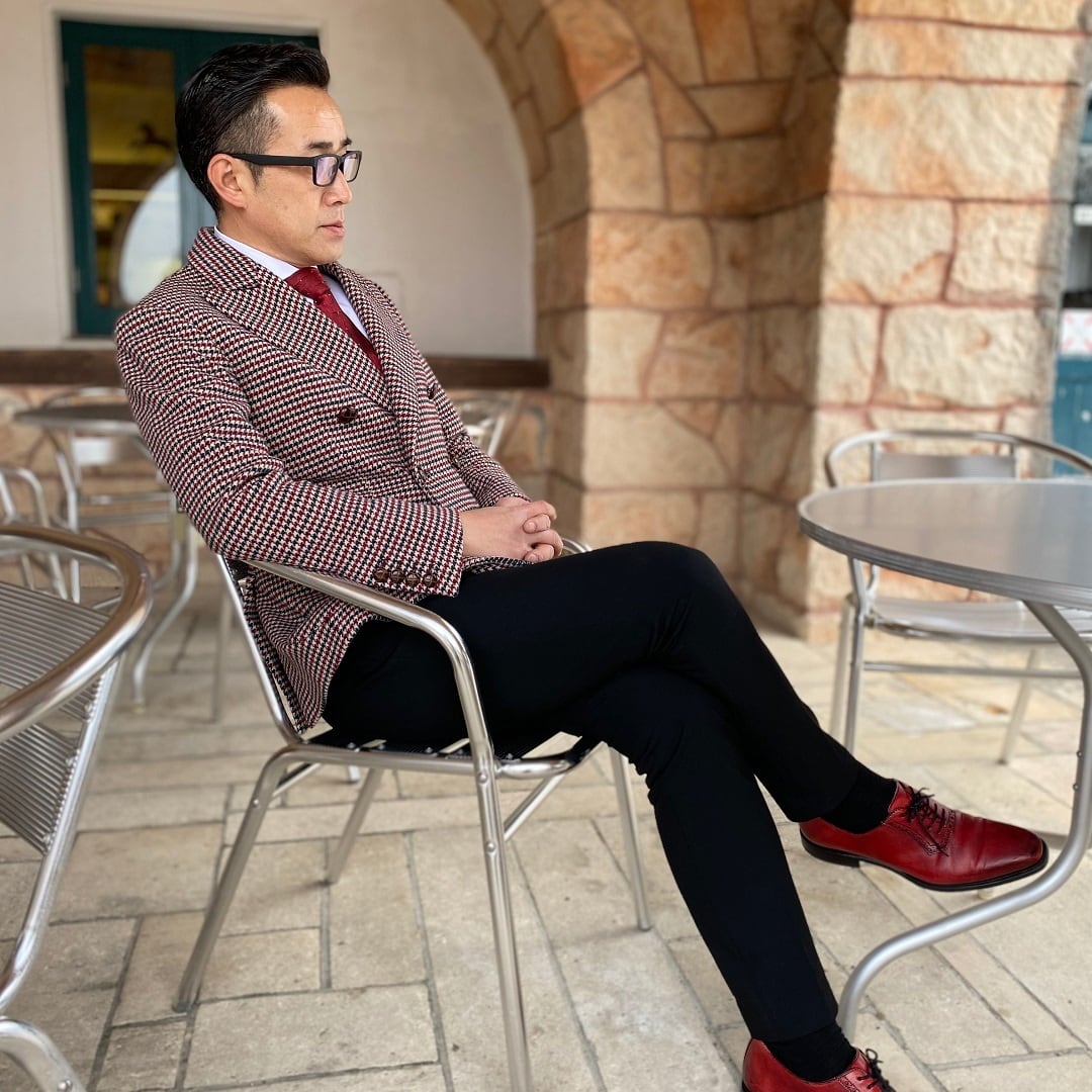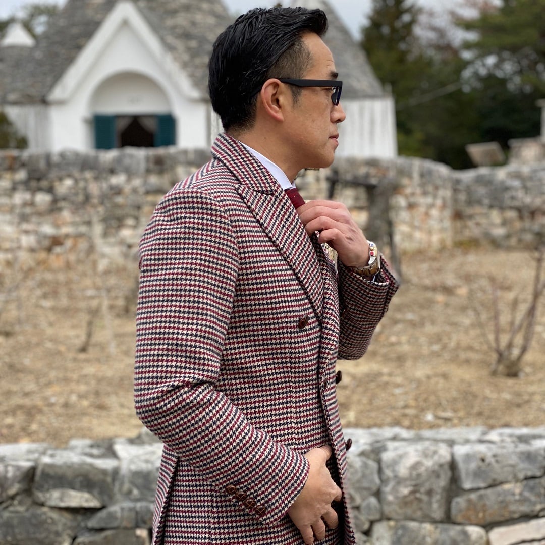 どこかノスタルジーを感じさせるハウンドツゥースチェック(千鳥格子)のダブルジャケット