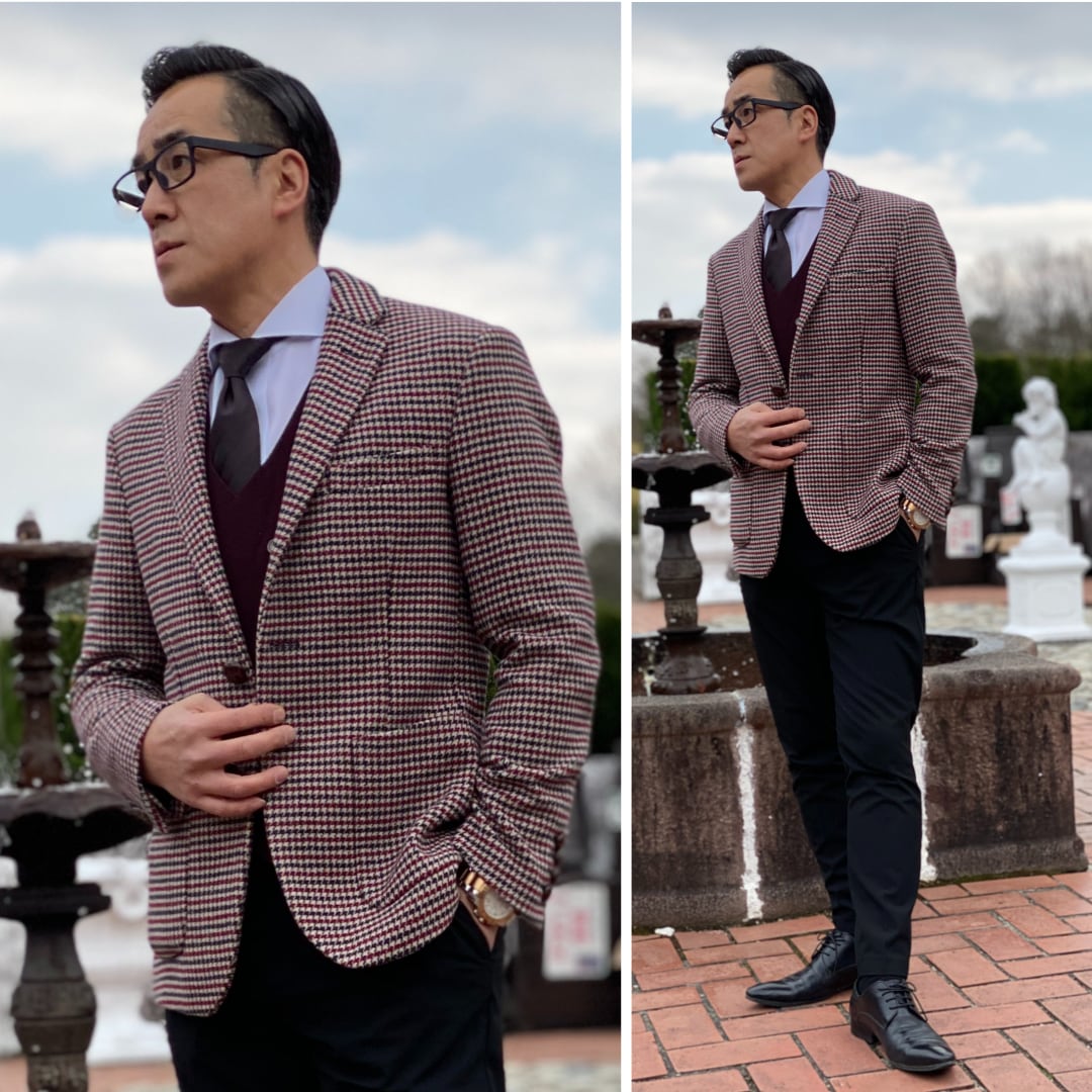 クラシカルな雰囲気がお洒落なハウンドツゥースチェック(千鳥格子)のシングルジャケット。