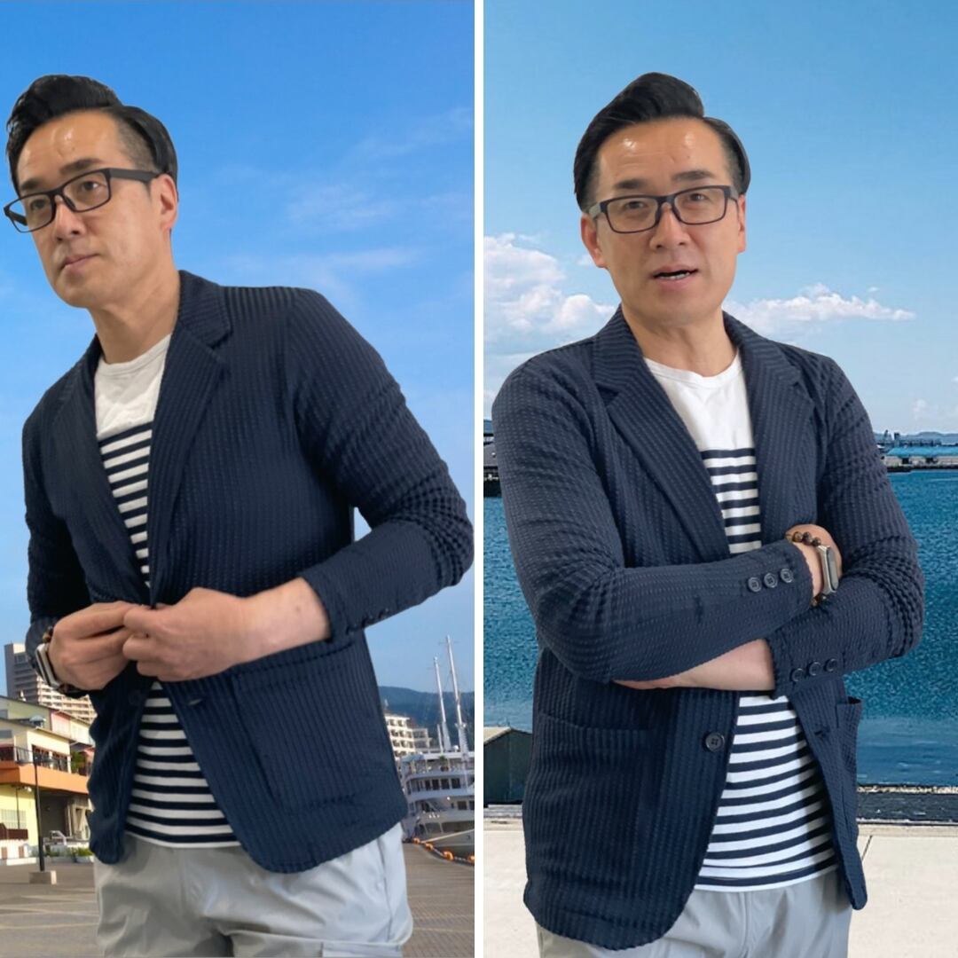 【完売】シアサッカーストレッチジャケットネイビー【NKT ARROWS】