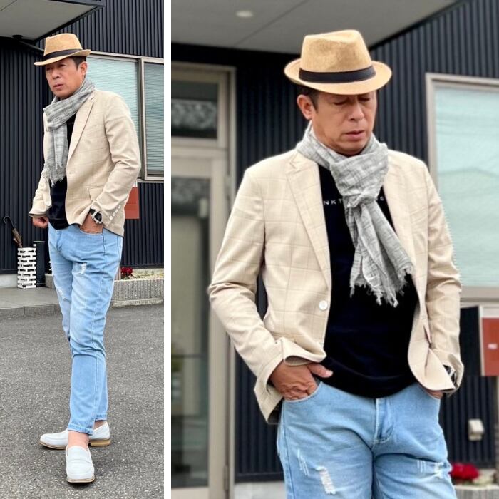 落ち着きのあるカラーと主張しすぎないチェック柄は様々なジャケットと好相性。