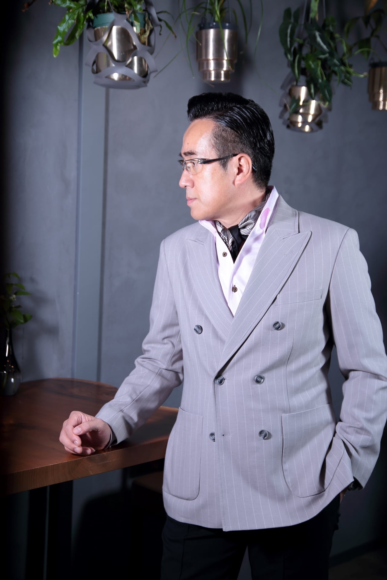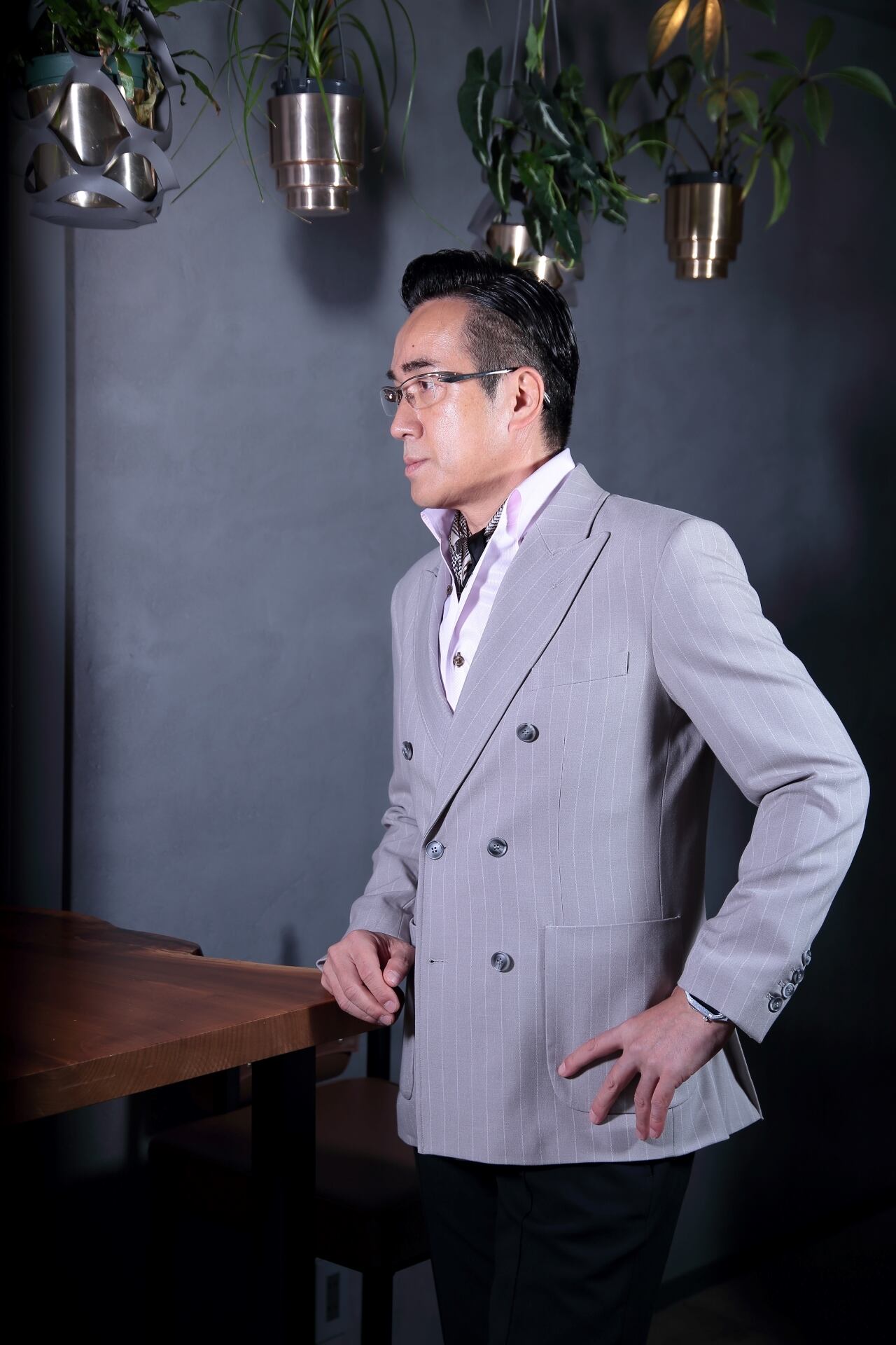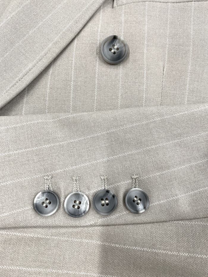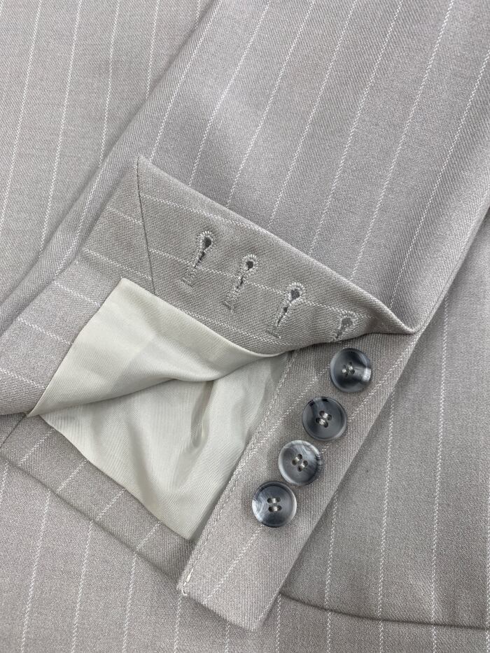 シルバーグレーに、ピンストライプが入ったクールな印象のダブルジャケット。