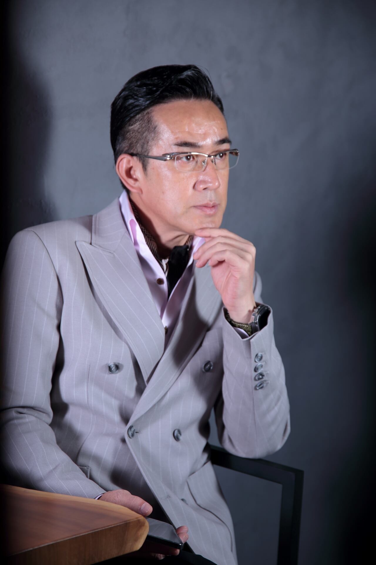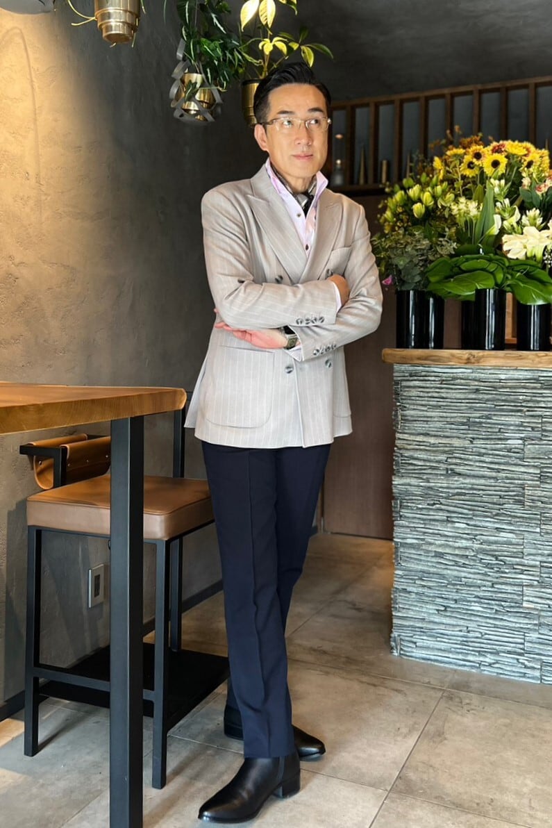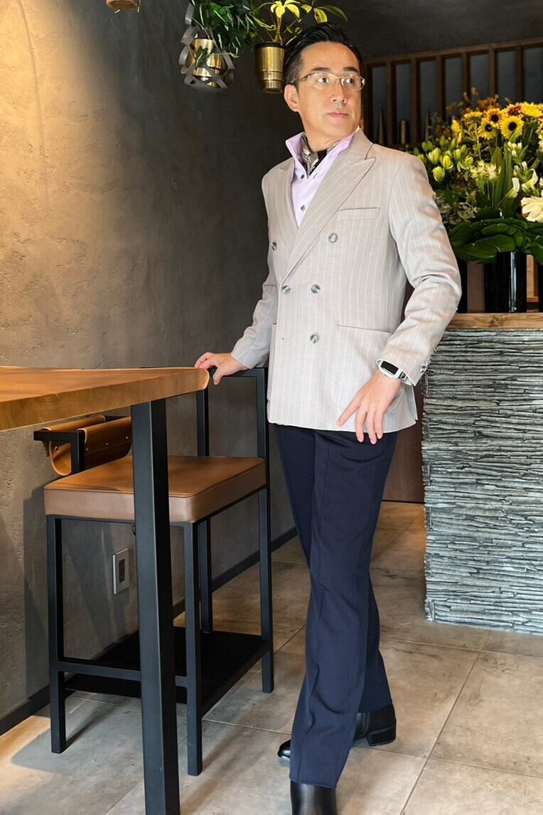 シルバーグレーに、ピンストライプが入ったクールな印象のダブルジャケット。