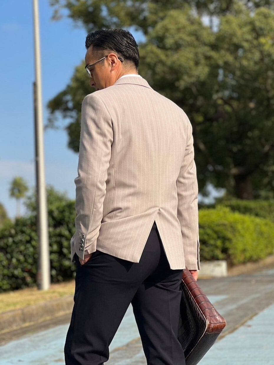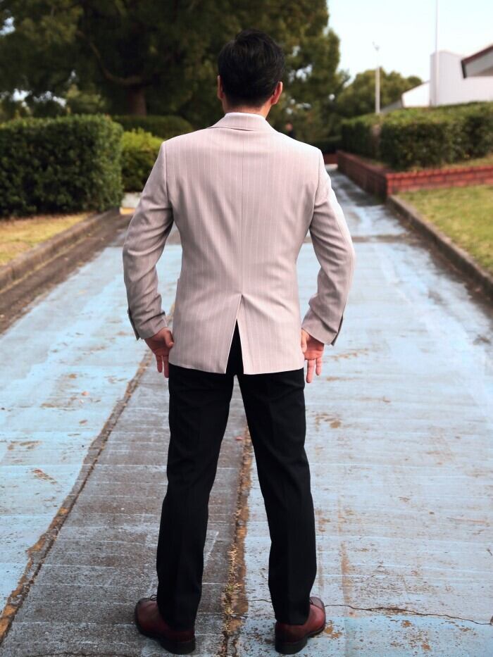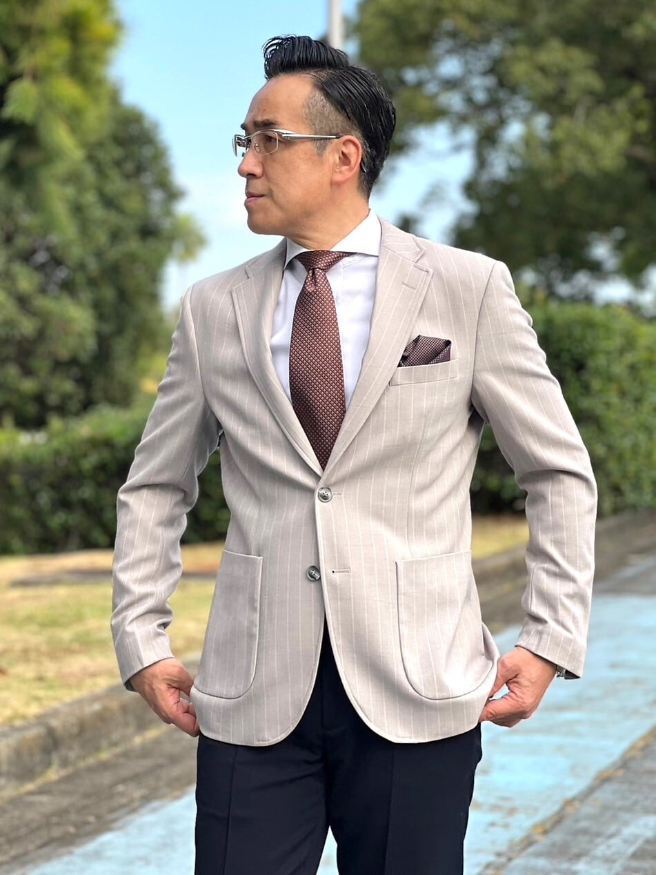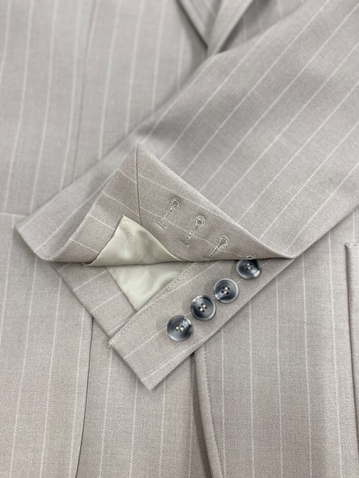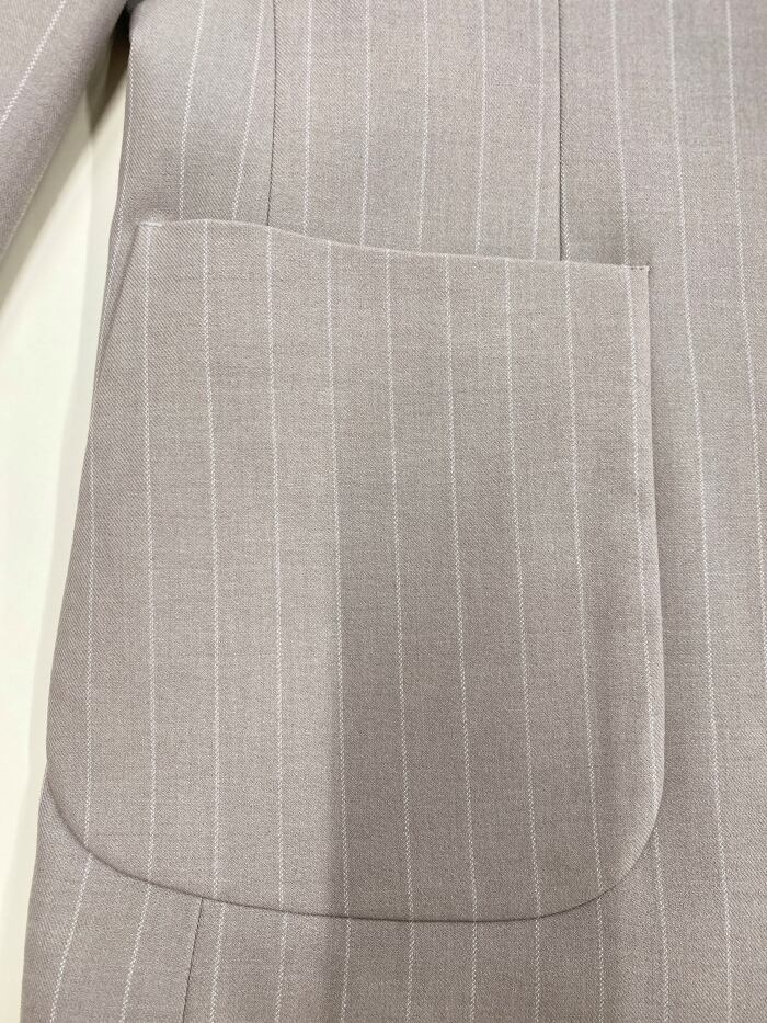 シルバーグレーに、ピンストライプが入ったクールな印象のシングルジャケット。