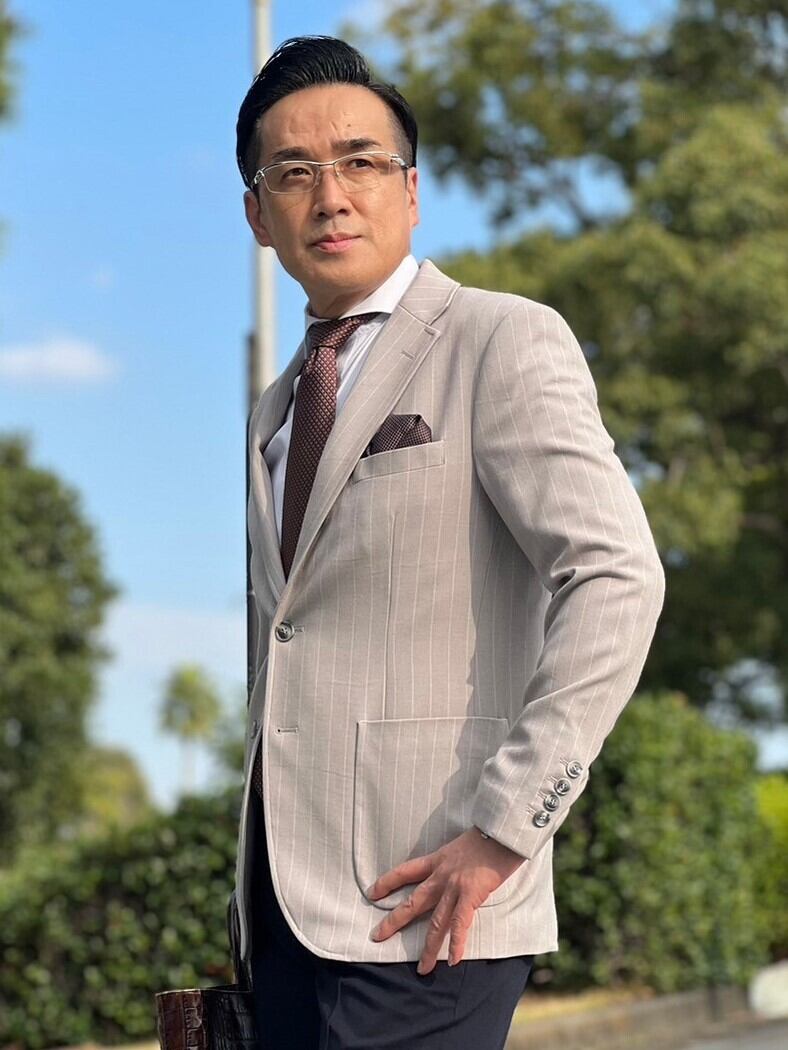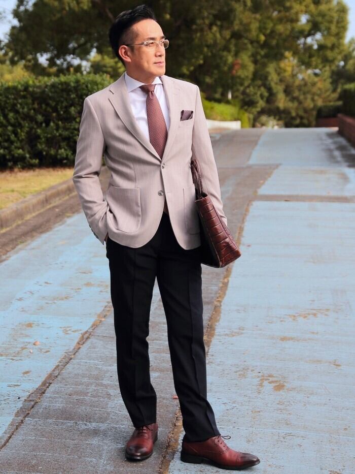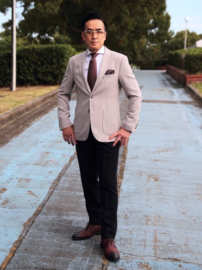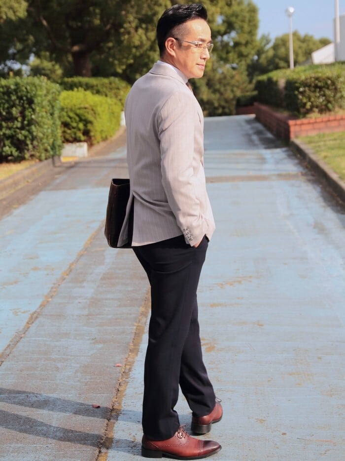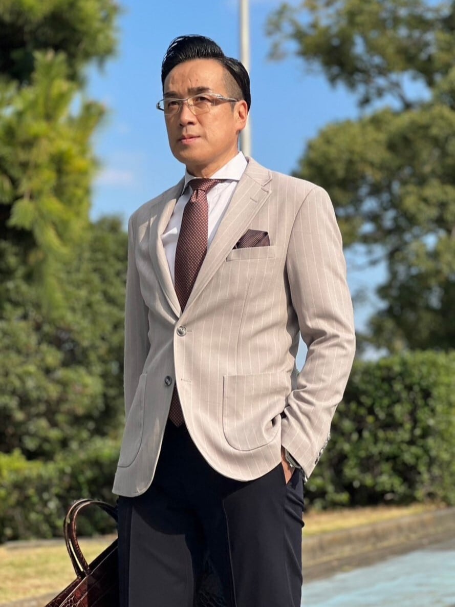 シルバーグレーに、ピンストライプが入ったクールな印象のシングルジャケット。