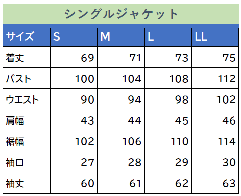 S:着丈69 バスト100 ウエスト90 肩幅43 裾幅102 袖口27 袖丈60